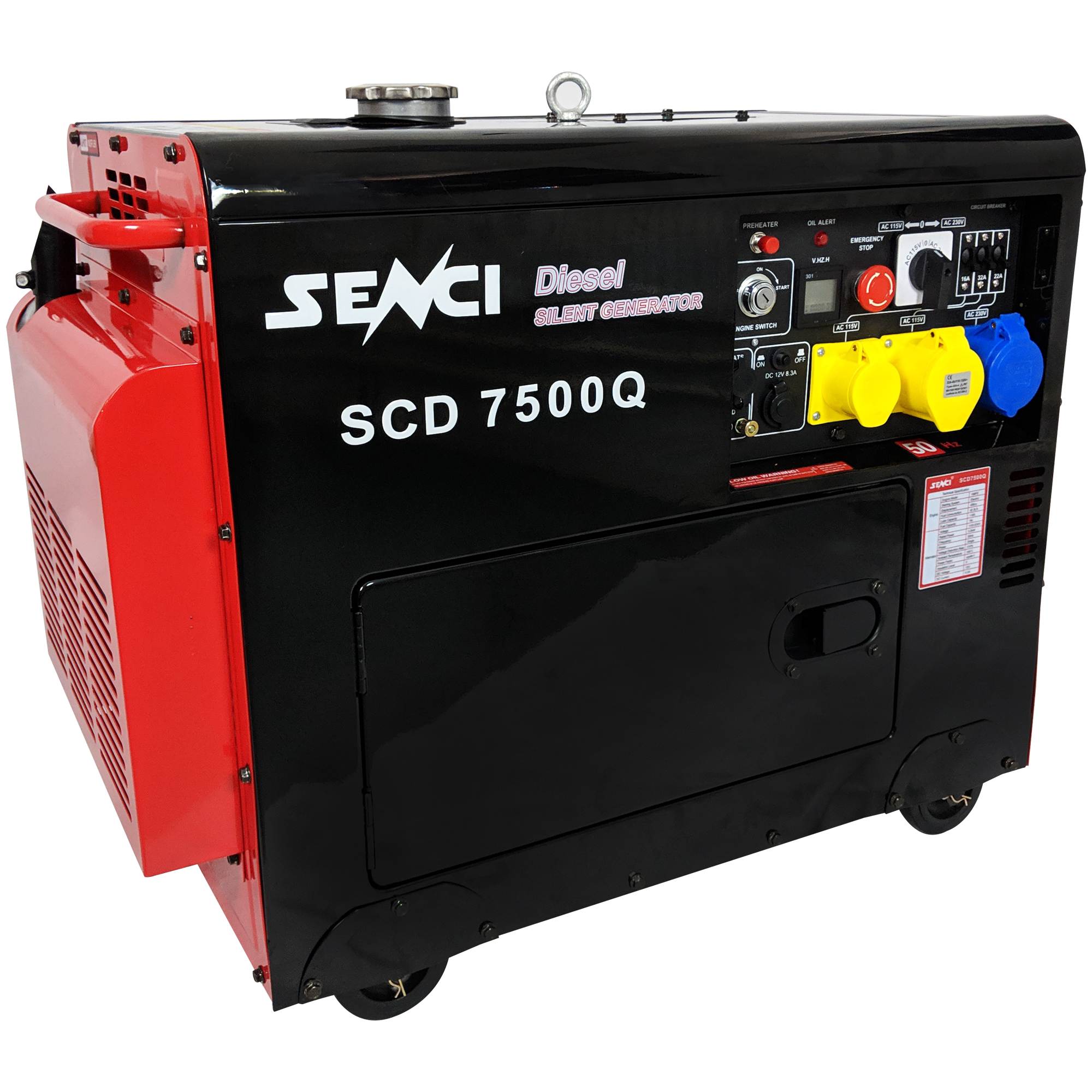 The Senci SC7500Q Generator has a tough and robust design casing that is sound proof with a cannopy to silence the noise level. Weighing 172kg when dry and with sturdy wheels making it portable and easy to move.